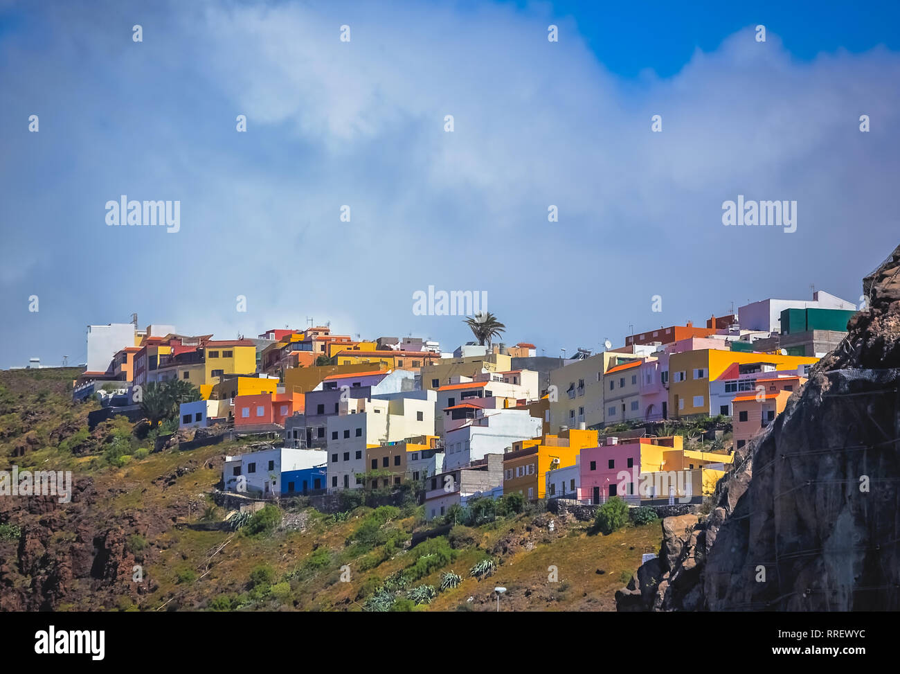 Maisons Colorees Sur Une Colline Ville De San Sebastian De La Gomera Iles Canaries Espagne Photo Stock Alamy